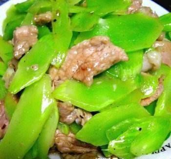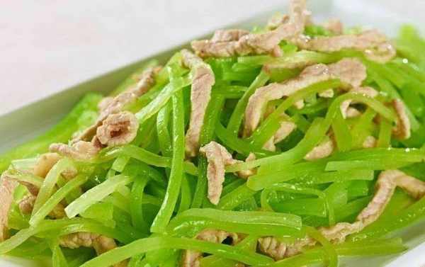 下來的時候我們可以和沙拉聯系起來,先把沙拉的皮剝掉,一定要剝幹凈,不然吃的時候味道會特別不好,然後把沙拉切成片或者絲狀,這裡是做法第一步,不是直接在鍋裡炸,而是先在容器裡放點鹽,攪拌成鹽水,把生菜片放進去泡五分鐘,加上這一步後,炸好的沙拉就出來瞭好吃,如果不做這一步,吃的時候會有苦澀的味道在裡面,這樣的沙拉怎麼能好吃,加上這一步,沙拉吃起來也會很脆很嫩,所以沙拉是最美味的感覺。這些都煮熟後,就可以在鍋裡加食用油瞭,加入適量的食用油,開火,等油熱瞭,把豬肉下鍋煮到肉片變色,加點醬油上色,這樣的豬肉好看又好吃,然後把色拉放進去,翻炒均勻,色拉煮熟後加入調味料,就可以出鍋瞭。