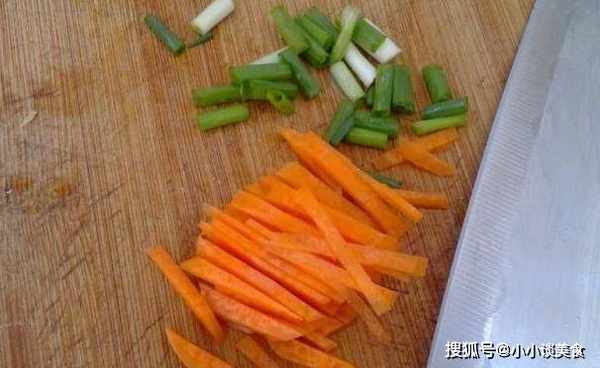 第二步:將豆莢清洗幹凈,取出備用。將買回來的大蔥清洗幹凈,清洗的時候把大蔥的黃色部分去掉,這樣大蔥吃起來更嫩。然後把買來的胡蘿卜洗幹凈,胡蘿卜洗凈切條。當所有的材料都處理好後,就可以開始加熱鍋瞭。