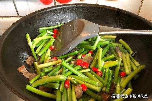 蒜苔炒臘肉,蒜苔減少瞭臘肉的油膩感,蒜苔含有豐富的膳食纖維,也是一種特別好的開胃助消化劑。過年期間大魚大肉吃多瞭,吃點蒜苔也能減脂!我們都知道蒜苔本身有一種辛辣的味道。炒得不好很難入味,很多時候炸出來的蒜苔沒有翠綠的顏色。想要烤出綠色美味的蒜苔,還是要註意的。一定的技能!烤蒜苔的時候,直接下鍋是大忌!再加1步,蒜苔鮮綠可口!