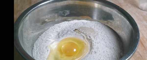 所有準備好的材料加入面粉中混合均勻,加入牛奶攪拌成沒有幹粉的面絮狀,邊倒邊攪拌。