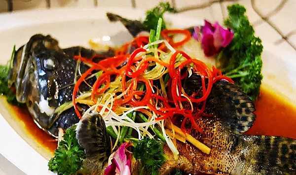 2、入燒開的熱水鍋中,蒸5分鐘左右(具體時間根據魚的大小),盛出移入另一個盤子,撒香蔥絲、淋蒸魚豉油;