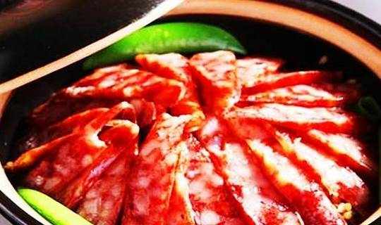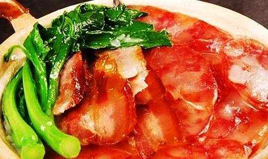 準備食材:泡好的大米、清洗幹凈的菜心、香腸和醬肉各適量。