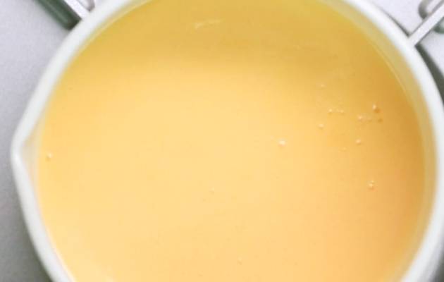 第二步:隨後把準備好的冰淇淋液倒入鍋中,用中小火煮至溶液變得濃稠,此時關火放溫備用。