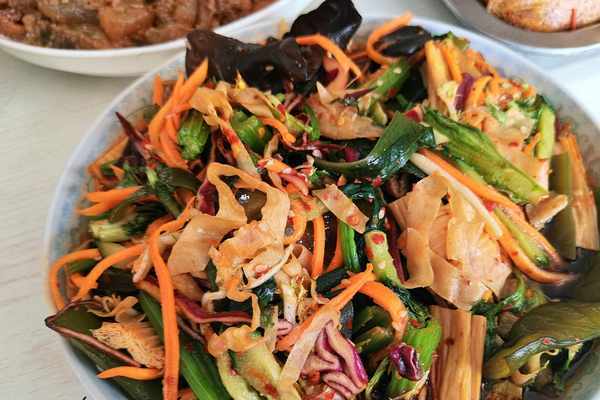 咸菜也是買現成的,裡面有黃瓜、芹菜、木耳、豆腐皮等等,看著賣相很好,但味道是真咸,絕對對得起“咸菜”這個名字,一般人是真吃不瞭。