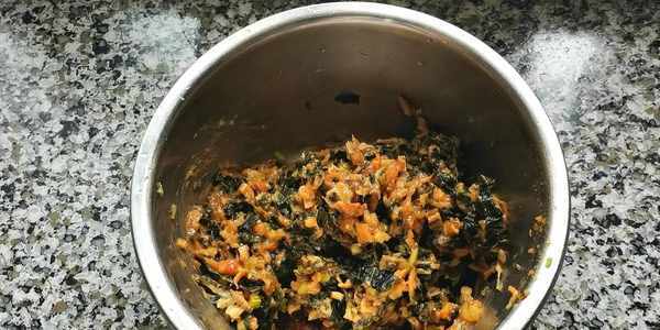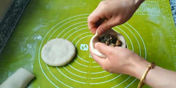 11,放入餡料,像包包子一樣給它收口。