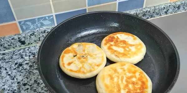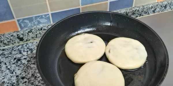 13,平底鍋刷層油,放入小餅,小火煎。