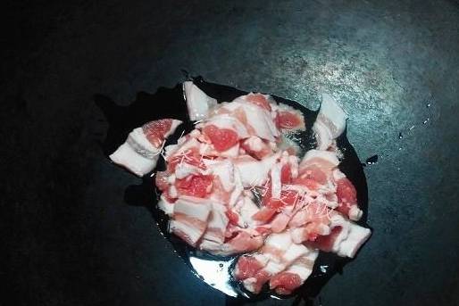 炒鍋熱適量食用油,下五花肉炒至出油脂。