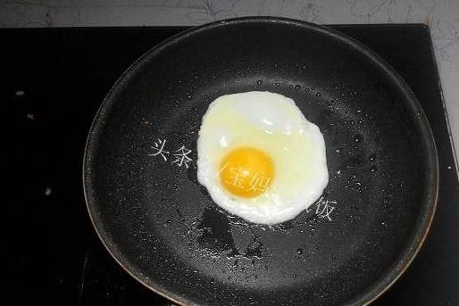 趁著炒飯的時候,旁邊灶上煎個蛋,老嫩自定;不喜歡煎蛋就跳過這一步。