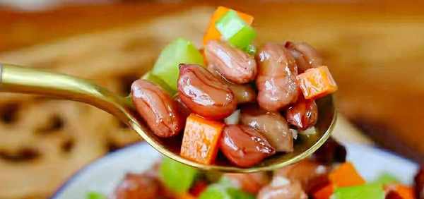 水煮花生米的制作要點。1、水煮花生米,很多朋友做的不入味,關鍵就是第一步沒做好,正確做法是,應該先將花生米放在盆中,加入等量清水,再加入兩顆八角,少許的花椒,精鹽,浸泡上一小時,這樣提前將花生米泡透,煮出的花生米更加入味,吃起來的口感更脆,煮的時候更加省火。接著再分享給大傢一道,特別好吃的涼拌花生米的做法。