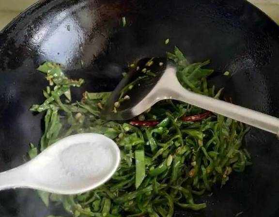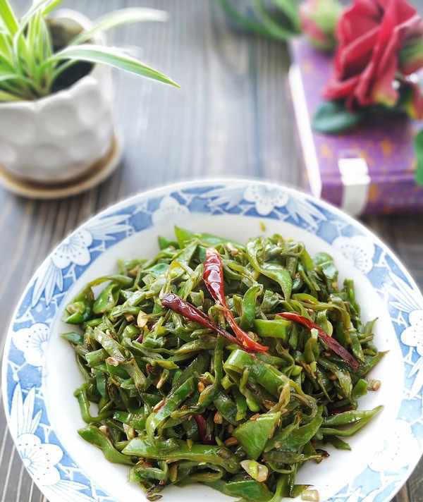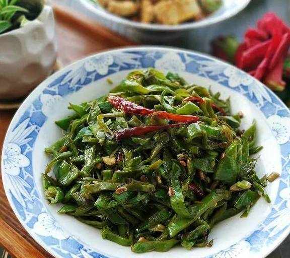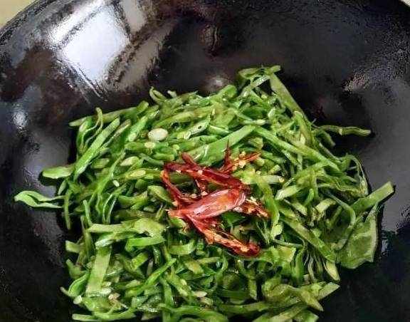 原料:扁豆、幹紅辣椒、蔥、薑、蒜、生抽、鹽。