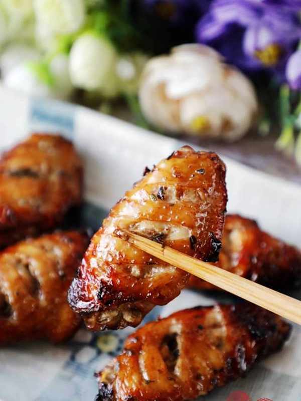 用九陽空氣炸鍋烹飪出來的烤雞翅,刷瞭蜂蜜,雖不用一滴油,但是表皮澄亮脆香,肉質鮮嫩,絲絲入味,尤其是羅勒的香味使其更加風味獨特,給孩子當點心,提亮心性,可口又可樂!(圖/文:添喜lucklily)