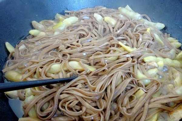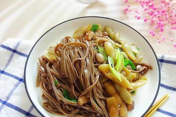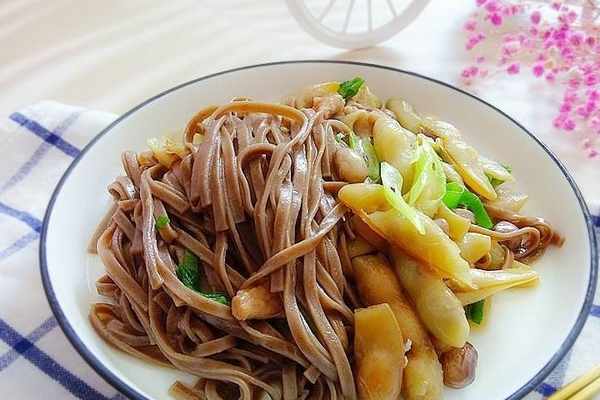 很多時候我做燜面,都是自己手搟面條做,偶爾變一下也是買來現成的新鮮現壓的面條,但今天我換瞭一個樣,用瞭傢裡現成的蕎麥掛面,從前以為用掛面怕熟瞭後粘連,這次做之後,完美,絕對沒問題,比單單煮著吃藥好吃得多呢。