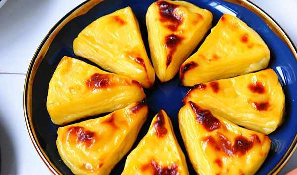 做法:牛奶、玉米淀粉、蛋黃混合,攪拌至無幹粉顆粒狀。過篩後倒入鍋中,加入芝士,小火將芝士熬至融化。繼續熬一分鐘左右,粉漿變成濃稠的糊狀,倒入模具中,放入冰箱凝固即可,切成幾塊。將奶塊放入烤盤中,表面刷一層蛋黃液。烤箱提前200度預熱5分鐘,再將奶塊放入烤箱中,200度中火烘烤15分鐘左右,烤至表面變成焦黃色即可。香氣四溢的烤鮮奶就可以開吃啦,趁熱咬一口,外皮焦嫩,內餡柔軟細膩的,讓人欲罷不能呢,天熱的話放冰箱冷藏瞭吃,比冰激凌更過癮!