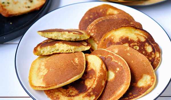 表面有小氣孔就可以翻過來瞭,繼續煎1分鐘左右邊緣翹起來就可以瞭。趁熱吃,軟軟的,濃濃香蕉味。
