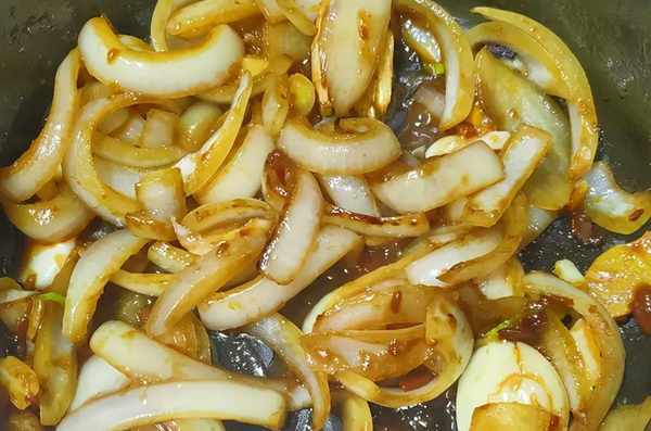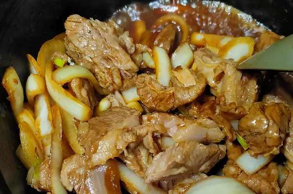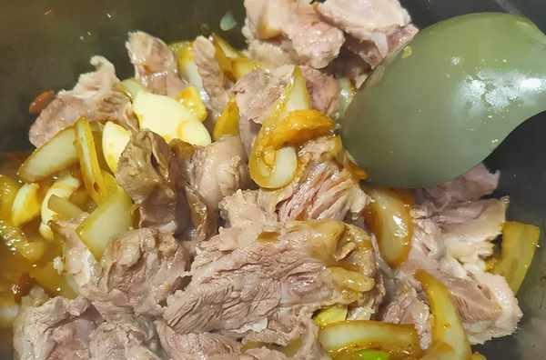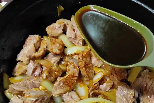 1、牛肉塊川燙過,再清洗幹凈後備用,鍋中入2大匙油,入糖炒醬色後依序加入薑.蒜,洋蔥拌炒一會,再倒入洗好的牛肉拌炒,入豆瓣醬拌炒一下,入醬油,蠔油,五香粉拌炒。