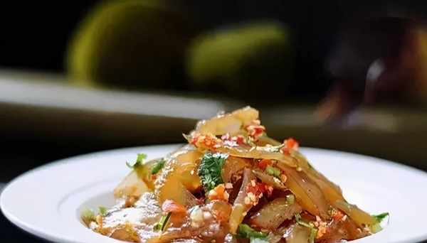 制作:1.把牛蹄筋治凈瞭,放鹵水鍋裡鹵至軟熟,撈出來晾涼後,切成片。2.把牛蹄筋片、小米辣碎、鮮花椒碎納盆,加放雞精、味精、生抽、白糖、香油和醋拌勻以後,再把香菜碎加進去拌勻,即成。