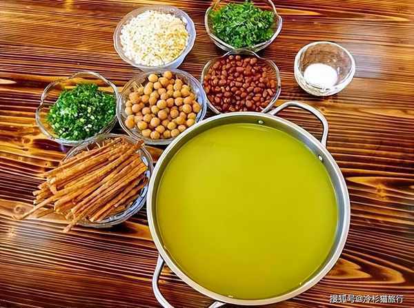 油與茶葉的奇妙結合,加入生薑與鹽調味,香醇中帶著一點苦澀,在熱辣中又帶著一些香脆。喝油茶時要慢慢品嘗,好好領略。