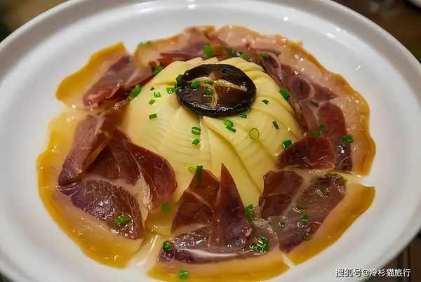 徽州火腿表面色澤變暗,肉質變緊,但用刀切開一看,卻是鮮明通透的,徽州人最愛的吃法是春筍臘肉一鍋燉,吃起來滿口生香,還曾登上《風味人間》節目。