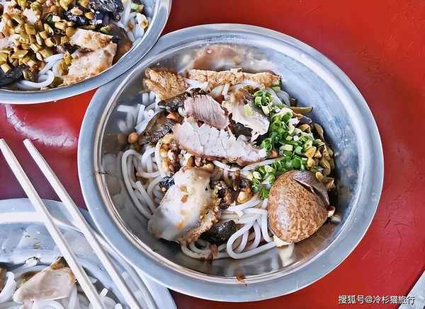 正宗的桂林米粉是沒有湯的,當地人稱之為鹵菜粉,一碗好米粉的關鍵恰恰在於鹵水。鹵水的制作工藝各傢有異,大致以豬、牛骨、羅漢果和各式佐料熬煮而成,香味濃鬱。