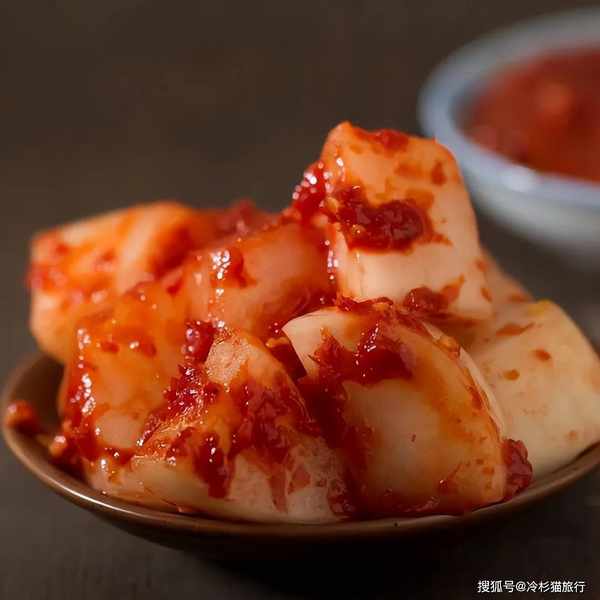 泡菜酸蘿卜是湘西一帶的特色小吃,把蘿卜切丁或條醃制,呈粉紅色,酸酸辣辣地引人胃口大開。