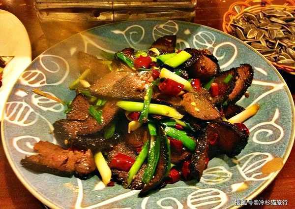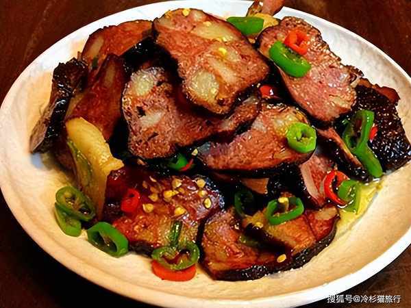 它是土傢特色菜,通常切片用大蒜、辣椒炒,別看外表黑熏熏的,卻是耐嚼味香。