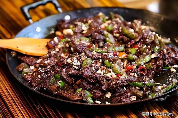 醋血鴨是將鴨肉大火煮,然後用小火燜,加入苦瓜、嫩薑等調味,出鍋前倒入鴨血與秘制酸水,吃起來醋香撲鼻,酸辣有鮮香。