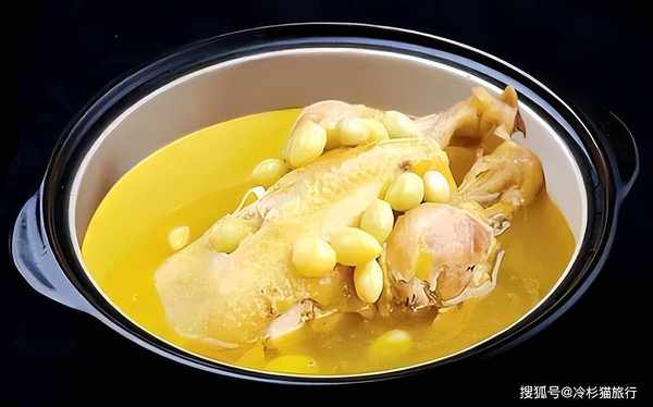 白果燉老鴨主要原料是產在桂林興安,靈川一帶的白果和老鴨,用文火清燉而成,其特點是湯微苦,果香肉甜,營養豐富,四季皆宜。