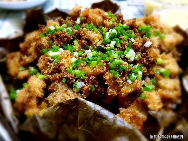荔浦芋扣肉是將五花肉和荔浦芋分別過油炸黃,然後放碗中蒸熟。這樣做成的魚片肉片松軟爽口,濃香四溢。