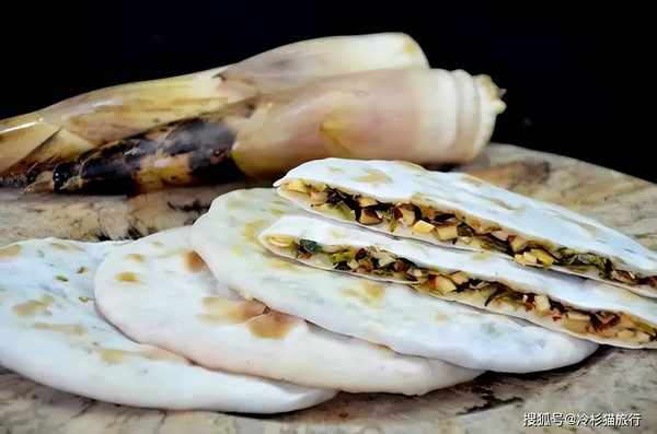 黃山燒餅外形很厚,因為燒餅有很多層,因此口味豐富。
