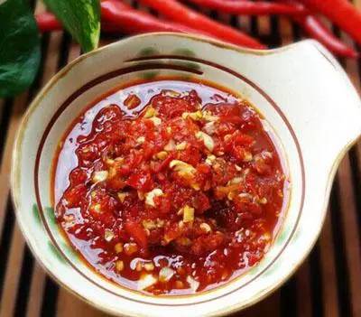 配料:辣椒面300克,油適量,鹽適量,糖適量,醋適量,蔥、薑、蒜適量,八角適量