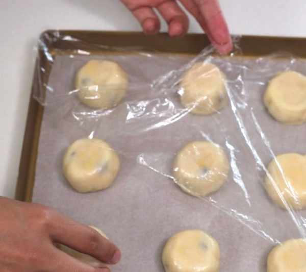 最後,把餅胚稍稍壓扁,形狀類似象棋,烤盤墊油紙。