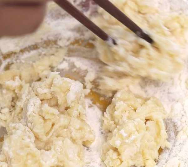 先用筷子拌成團。
