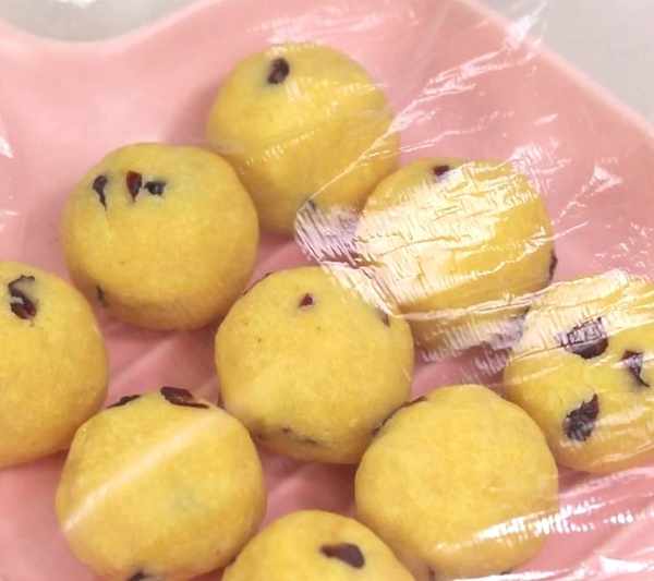 把綠豆餡按30g一個全部搓圓,密封保濕。