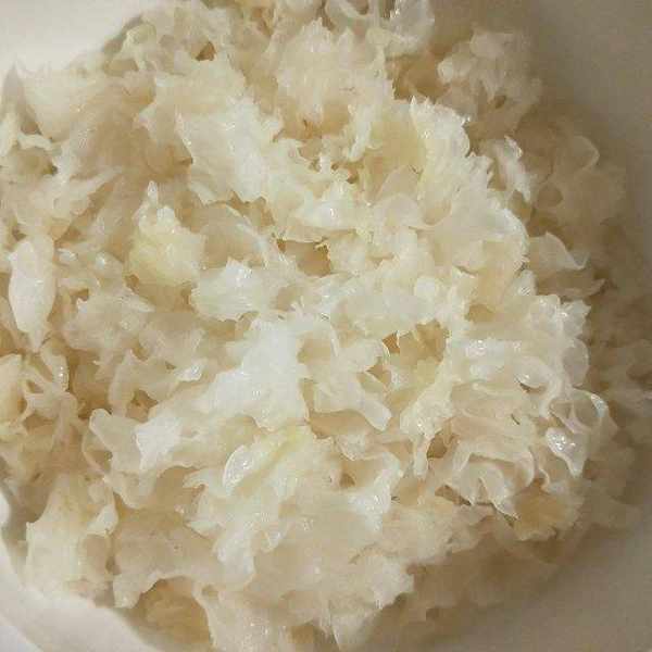 第二步:把泡好的白木耳撕碎,試著把它撕成小塊。