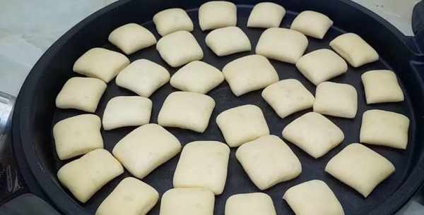 切成小鍋巴狀,放入案板,擺放均勻留出空隙,而且不用二次醒面。