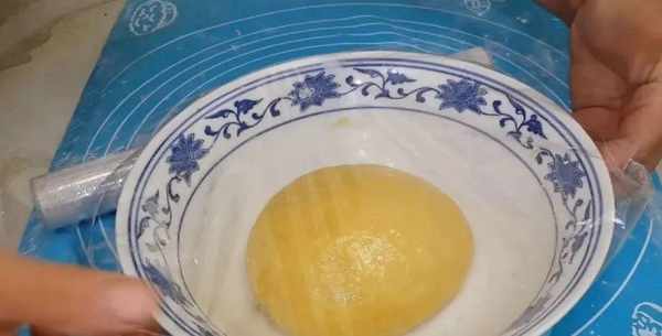 面團裹上保鮮膜,發酵至兩倍大小,正常室內發酵即可。