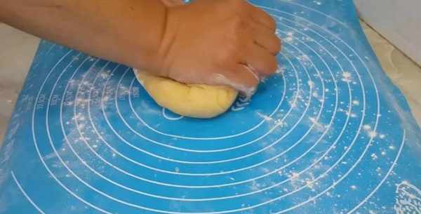 案板撒上少許面粉,放入面團揉出面團氣泡。