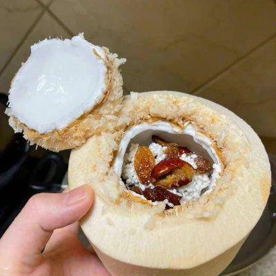 2.椰子殼:首先,挖出椰子肉,做雞湯或椰子汁。這椰子肉很軟,很香,而且很容易挖!