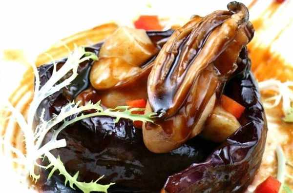 茄子1根、生蠔2根、苦菊、紅菜頭、鷹嘴豆、蒜頭、幹蔥頭、蠔油、老抽、一品鮮、八角、糖、雞精、油