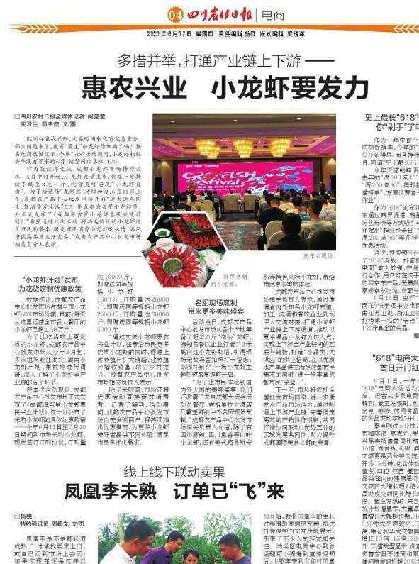 “通過實施小龍蝦惠農興業計劃,在帶給市民更多優質小龍蝦的同時,促進上遊養殖戶擴大銷路,讓養殖戶增收致富,助力鄉村振興。”成都農產品中心批發市場相關負責人表示。