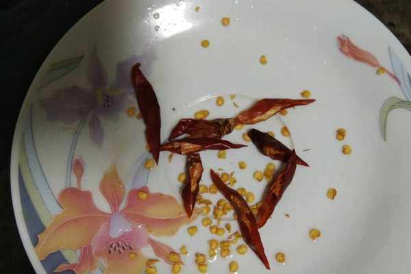 食材:豆角300克、蠔油一大勺、蒜2瓣、幹辣椒2個、鹽少量