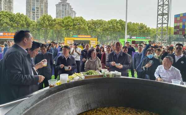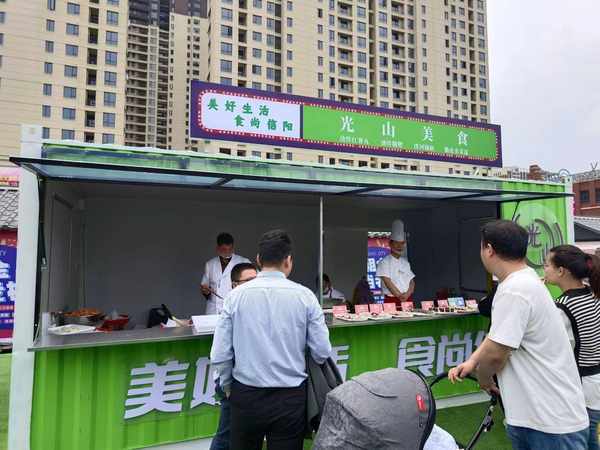 參加啟動儀式的領導和嘉賓,來到現場的美食展位區,品鑒信陽特色菜四大鍋和信陽市八縣兩區的特色集裝箱美食。現場吸引瞭眾多的市民來到美食廣場一飽口福。