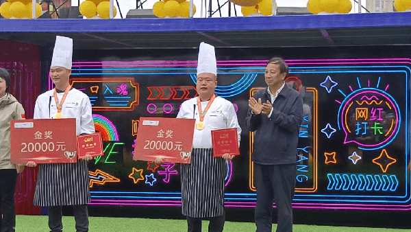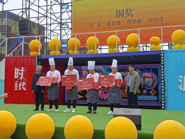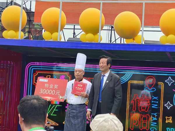 活動現場進行瞭信陽菜美食大賽(廚王爭霸賽)頒獎儀式。廚王汪元保獲得特別金獎30000元。餘志立、晏學忠等2人各獲得金獎20000萬。常城、呂維軍、易偉等3人各獲得銀獎10000元。吳永、張光濤、曾祥保、李付成等4人各獲得銅獎5000元。
