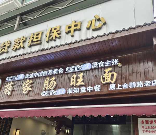 在貴陽市,有許多經典的腸旺面店,其中比較老的一傢店,也是上過央視的一傢店,叫蔣傢腸旺面。這傢店有十多年瞭。我是下午一點多去的,看見路邊已經排瞭很長的隊伍瞭。這傢店的肥腸處理的非常幹凈,血旺很嫩,豆泡也入味,面很勁道。可以加脆哨,口感脆脆香香的,也可以加軟哨,軟哨是紅燒肉的感覺,也很好吃。再倒上一點醋,最後把湯喝完。對瞭,店傢可以免費加面,絕對能吃飽!