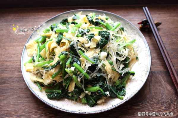 菠菜粉絲拌蛋皮的做法:材料:菠菜適量,粉絲少許,雞蛋2個,蒜末少許,鹽適量,醋1勺,生抽1勺,香油適量。