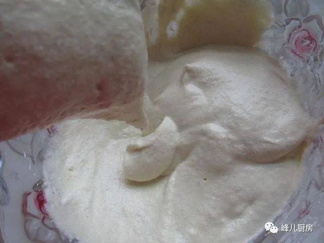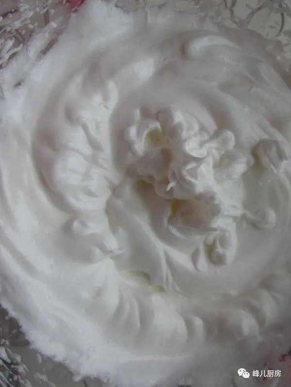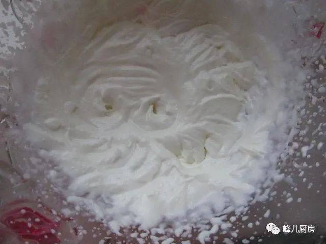 5、把蛋清加入白糖,打蛋器打成幹性發泡。