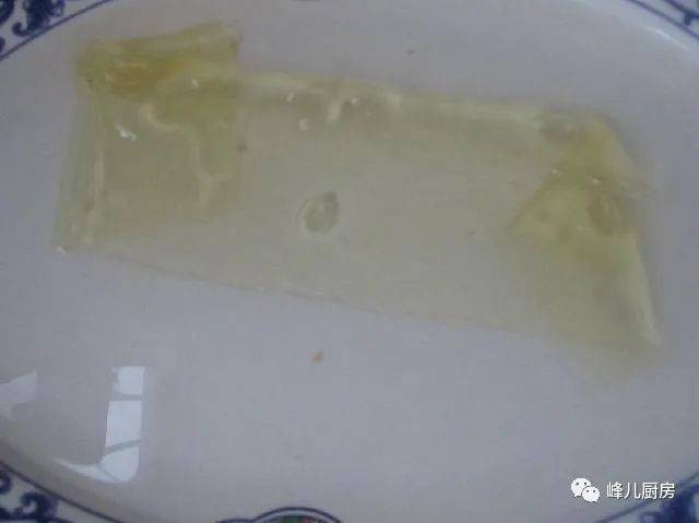11、將牛奶微微加熱,加入魚膠片和櫻桃醬。
