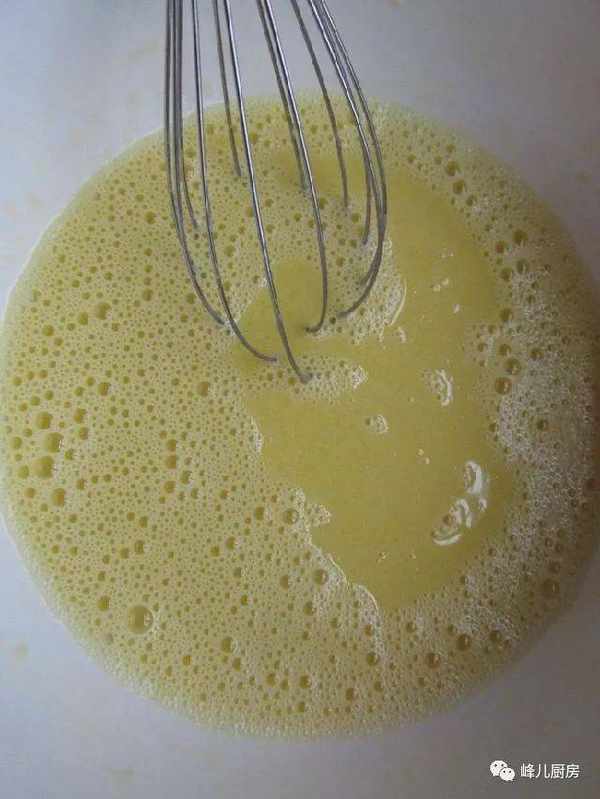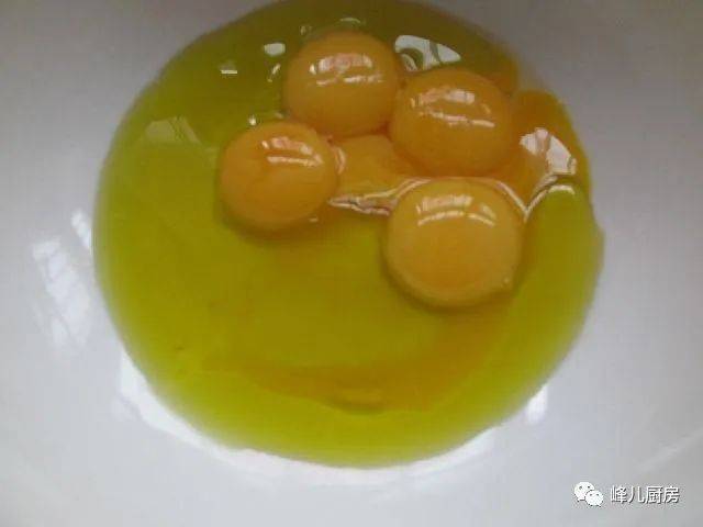 2、將蛋黃和蛋清分開,把蛋黃裡倒入橄欖油和牛奶。