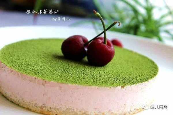盼望著!盼望著!終於盼到瞭“五一”放假,上班族可以休整一下,孩子們可以放松一下,五一假期帶孩子春遊無論遠近那都是必需的,春遊就要準備很多吃的喝的,建議給孩子做一款蛋糕,讓孩子充分享受媽媽親手制作帶來的幸福感,吃在嘴裡,甜在心裡,慕斯蛋糕是首選,這款慕斯蛋糕用橄欖油代替其他油脂,把粗糧加入低筋面粉中,買來剛上市的新鮮櫻桃,制作出純凈櫻桃醬,把糖的用量降到最低,櫻桃味道變得更美,抹茶色澤更靚,這樣的慕斯是不是很健康呢,我的答案是的,不用怕胖,照樣可以吃到美味,口感一點都不會打折,快快行動起來吧。