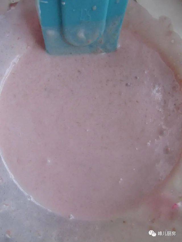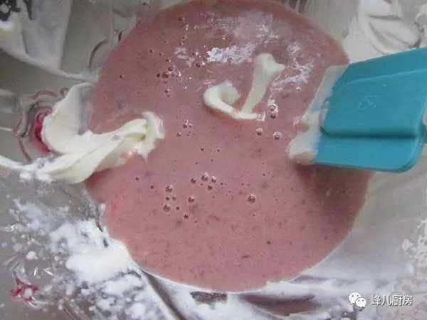 14、把牛奶和櫻桃醬的混合液倒入淡奶油中。